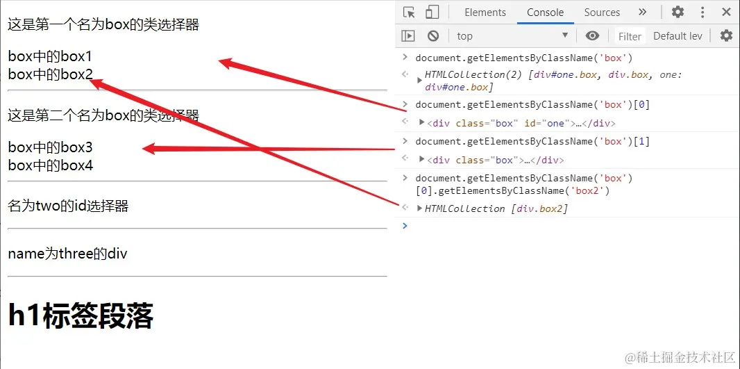 返回一个类似数组的对象(不是数组),包括所有class名符合指定条件的元素。元素的变化实时反映在返回结果中。