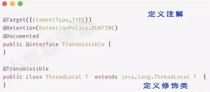 1、定义注解,以及被注解修饰的ThreadLocal类