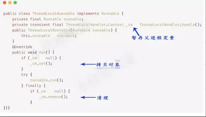 将父线程相关的变量暂存之后,就可以在使用的时候,通过主动设值和清理,完成变量拷贝。