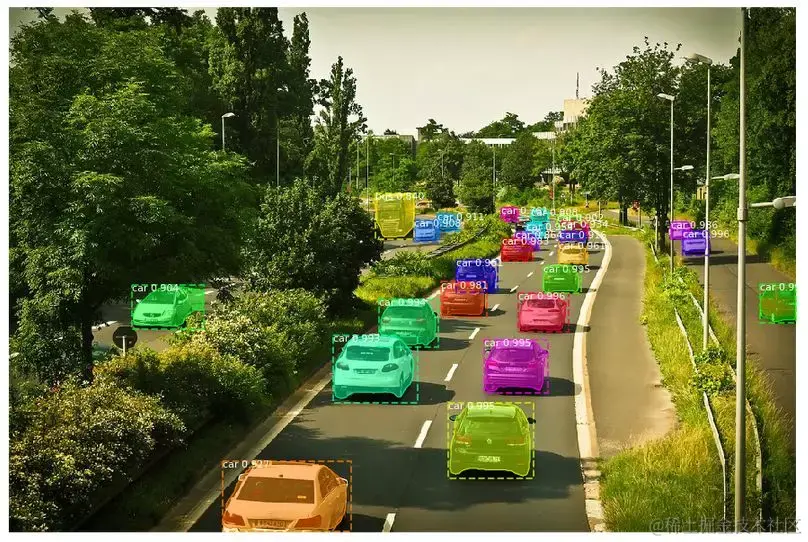 有趣!该模型成功地将图像中的汽车和自行车进行了分割。每个掩膜或所分割对象均可分开研究。其实现方式详见下文。