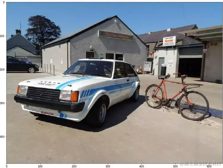 此即测试用图。两辆汽车(一辆在前,一辆在后)及一辆自行车清晰可辨。