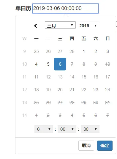 单日期时间选择