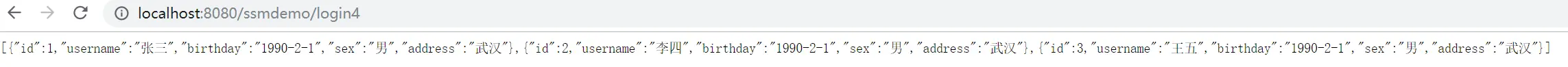 List集合被转换成了JSON数组,我们从数据库查询到数据后都会放入对应的实体类集合中,然后把集合转换成JSON格式发送给客户端,有了@ResponseBody和Jackson转换器可以很容易的实现。