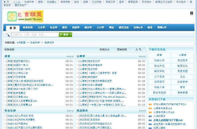 这款电子书网站涵盖了非常多的专业书籍,可提供免费下载功能,其中里面有部分书籍是可在线观看的,涵盖有人才学、社会学、名族学、人口学、管理学等等。