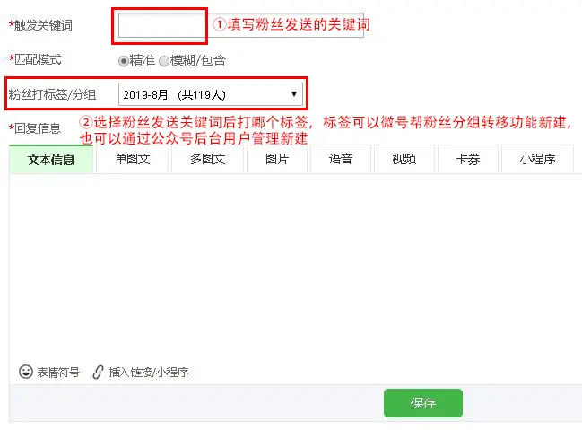 粉丝向公众号发送关键词,公众号自动为粉丝打标签,已认证的公众号都能使用这个功能。