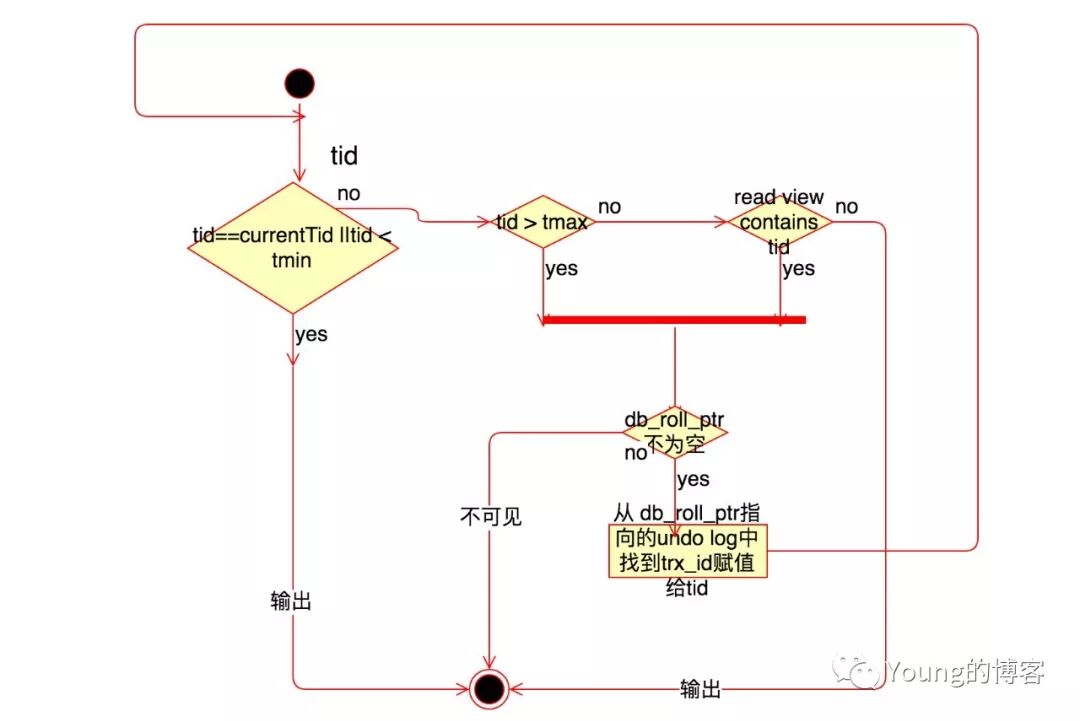 ID 的大小关系来决定版本记录的可见性,具体判断流程如下: