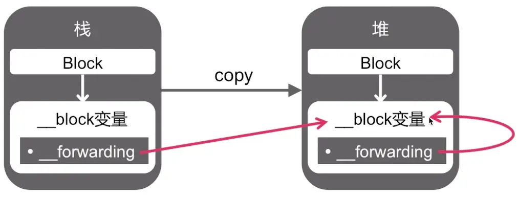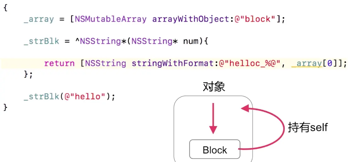 Block在编译后的函数体是一个c函数,在调用时直接通过指针调用。