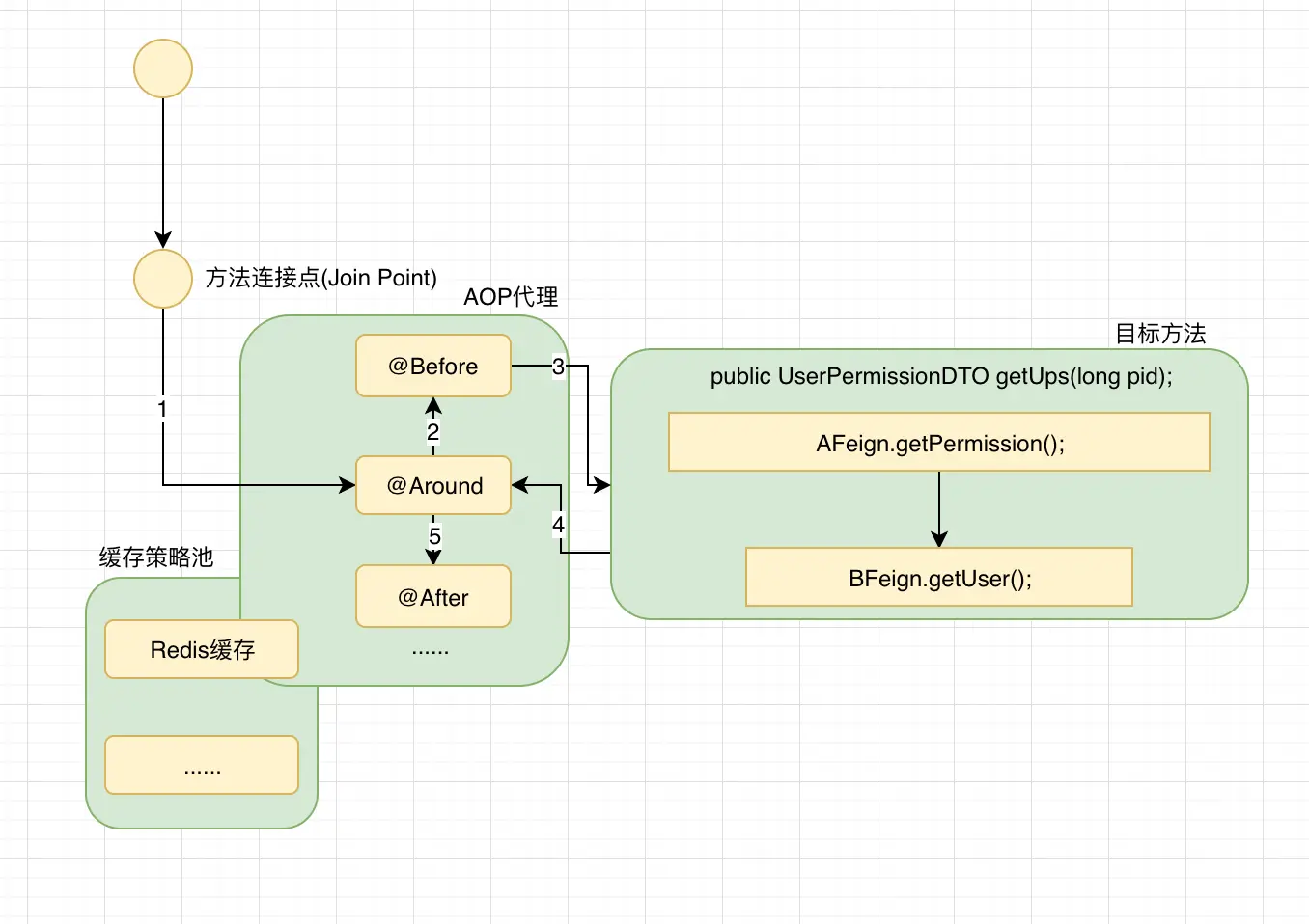 针对连接点的缓存策略,可以有很多种实现,本质上就是定义一个抽象策略,然后自己根据抽象策略去做具体实现。也就是策略设计模式的一种变种应用。