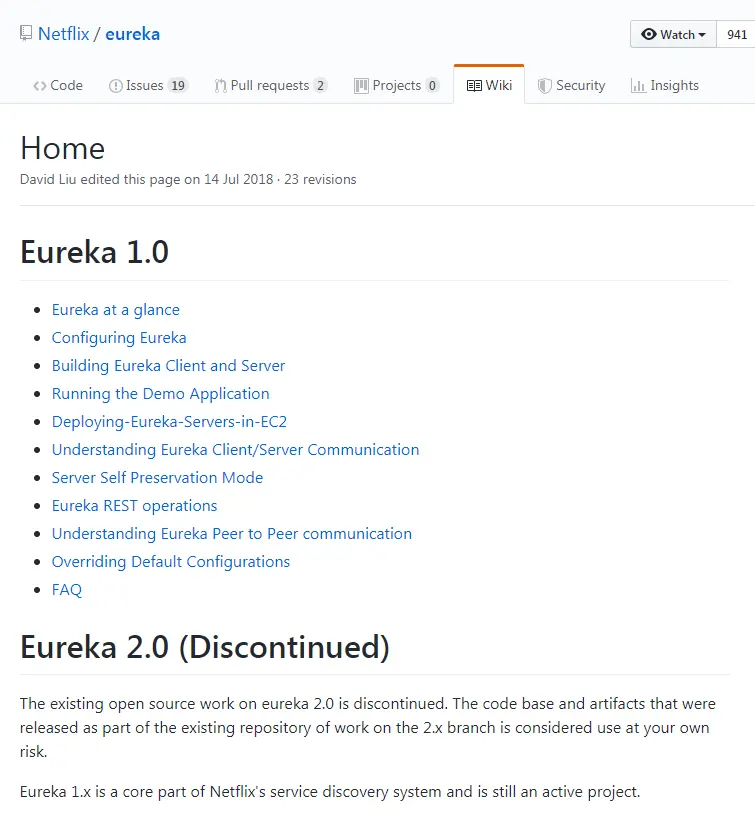 关于Eureka 2.0,从github上可以看到 Eureka 2.X从来就没有正式发布过! 说白了 Eureka 2.0 没有孵化出来,流产了,虽然 Eureka 2.0 闭源了,但绝不代表Eureka的闭源! 官方依然在积极地维护Eureka 1.x!