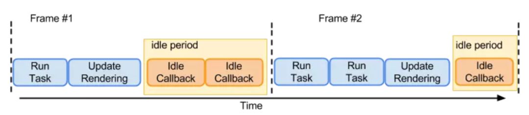 在上面我们已经知道浏览器是一帧一帧执行的,在两个执行帧之间,主线程通常会有一小段空闲时间,requestIdleCallback 可以在这个空闲期(Idle Period)调用空闲期回调(Idle Callback),执行一些任务。