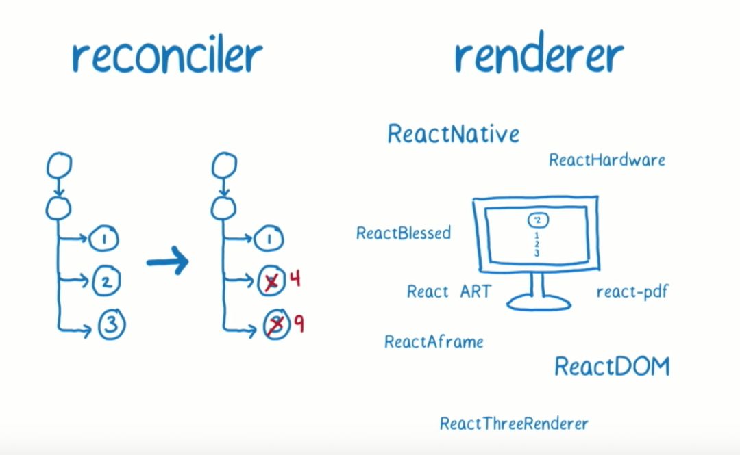 渲染阶段(Renderer): 遍历更新队列,通过调用宿主环境的API,实际更新渲染对应元素。宿主环境,比如 DOM、Native、WebGL 等。