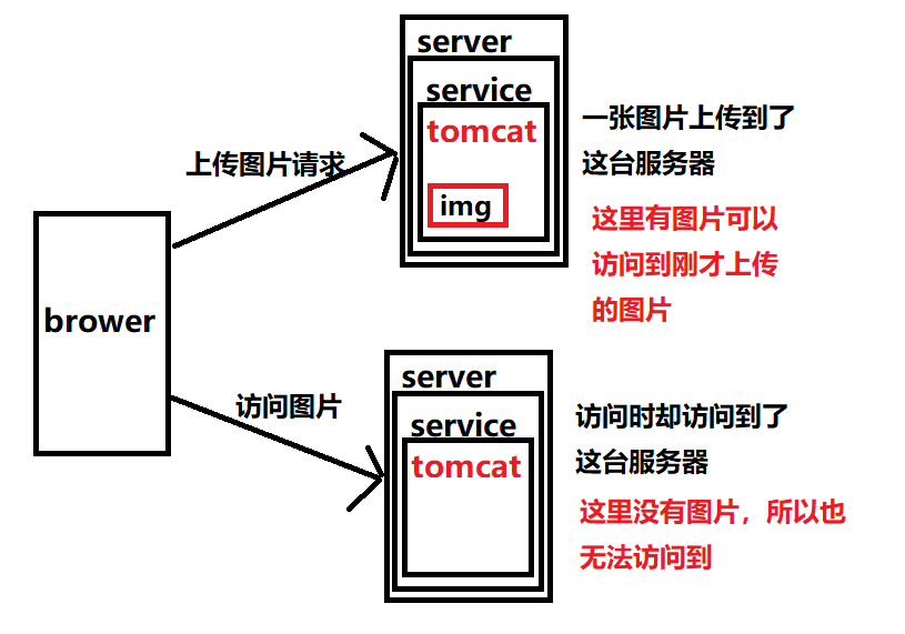 在tomcat集群中上传文件时,文件上传至一台服务器中,另一台中并没有图片,导致无法访问该图片(文件)。