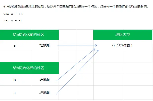 3.引用类型的复制就是地址的复制而已,对其中一个变量进行改变的话另外一个也会受到影响。