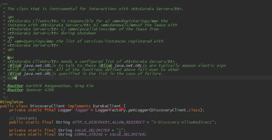 作为服务发现的主要接口EurekaClient它是怎么进行服务发现的,我们看下他的实现类DiscoveryClient
