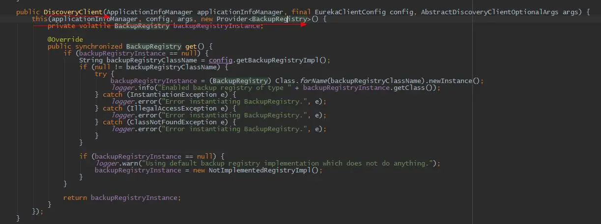 BackupRegistry:客户端启动的时候,访问不到指定的eureka server的话,会回滚到到指定的备份注册应用表,然后将备份注册应用表返回的应用信息填充到本地。