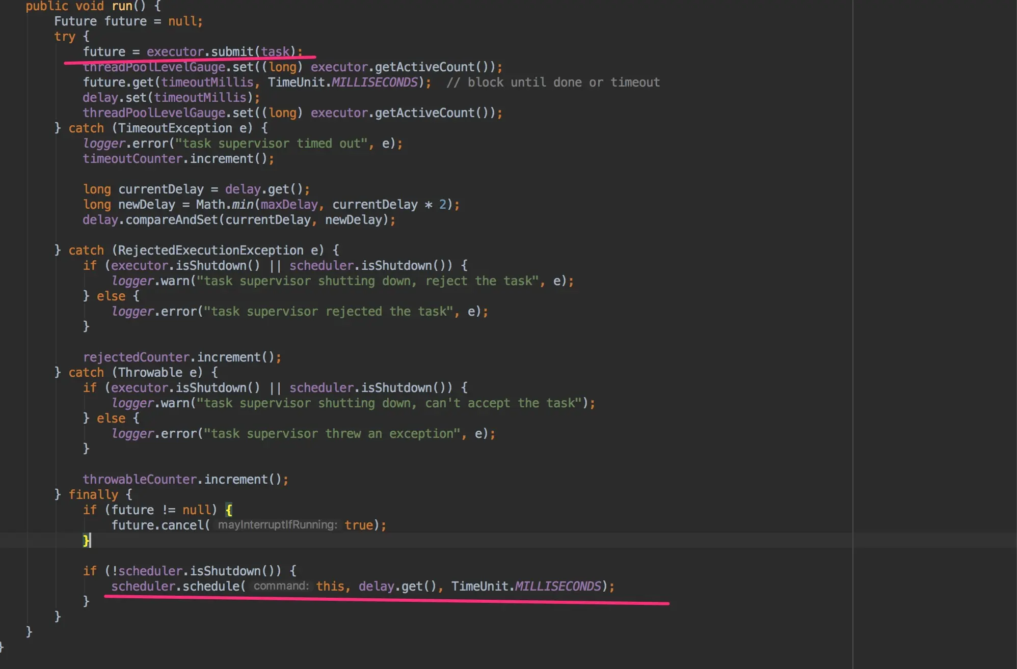 Future next = scheduler.schedule(this, replicationIntervalSeconds, TimeUnit.SECONDS);