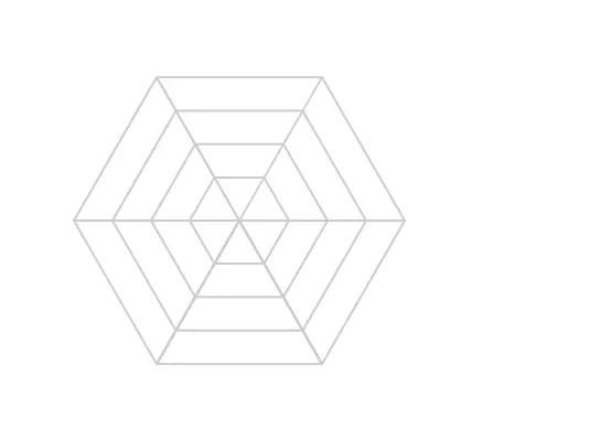 }通过半径的不同,实现多个圈形的绘制。其中边的个数和半径的个数都是可调的,改变radarNum 的值和 半径的长度