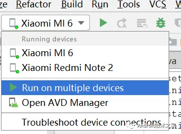 该版本有一个新的下拉菜单,可以快速选择要将应用程序部署到哪个设备。此菜单还包括一个新选项,允许一次在多个设备上运行应用程序。