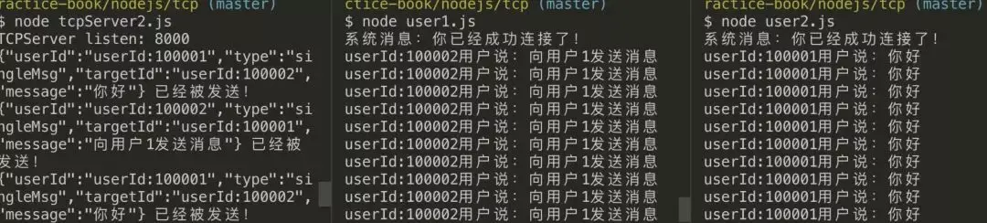 })使用node tcpServer.js启动TCP服务器,进行输入内容测试。