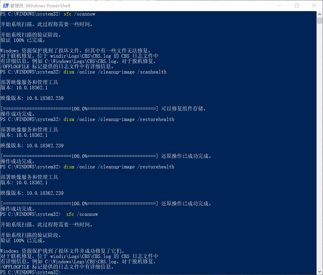 - 再次sfc /scannow修复