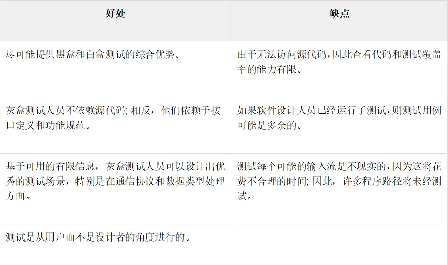 下表列出了区分黑盒测试,灰盒测试和白盒测试的要点。