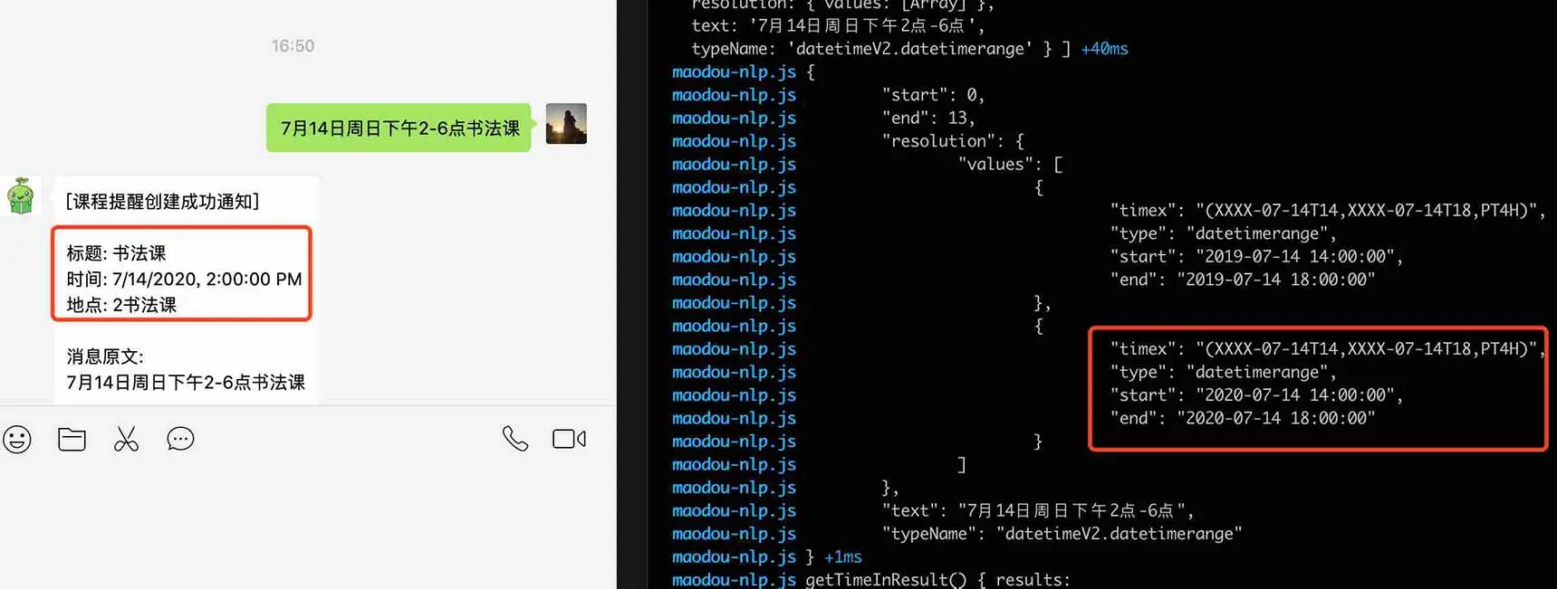 在6月9日10点这种语言环境下,会产生两个歧义四种结果,今年或明年的6月9日,上午或下午10点,所以可以看到识别的结果是四个,第二个结果正好巧合是我们需要的。