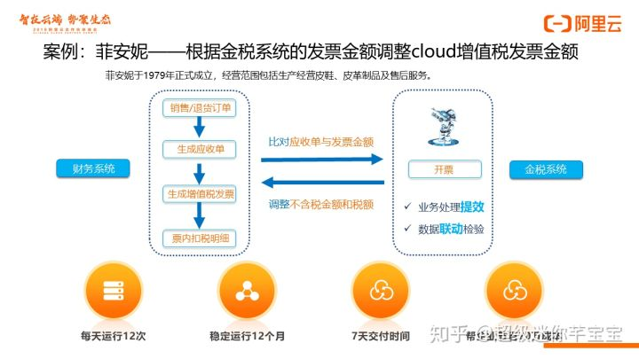 阿里云RPA针对客户的痛点进行了自动化操作。根据客户的原始业务发生的销售退货单,每天自动登陆到系统,自动生成应收单,生成票内的扣款明细,生成增值税的发票,自动登陆到金税系统,在系统里面完成了开票。这就是目前非安妮启用阿里云RPA做到的。目前每天运行12次,稳定运行了一年,我们只花了七天时间。