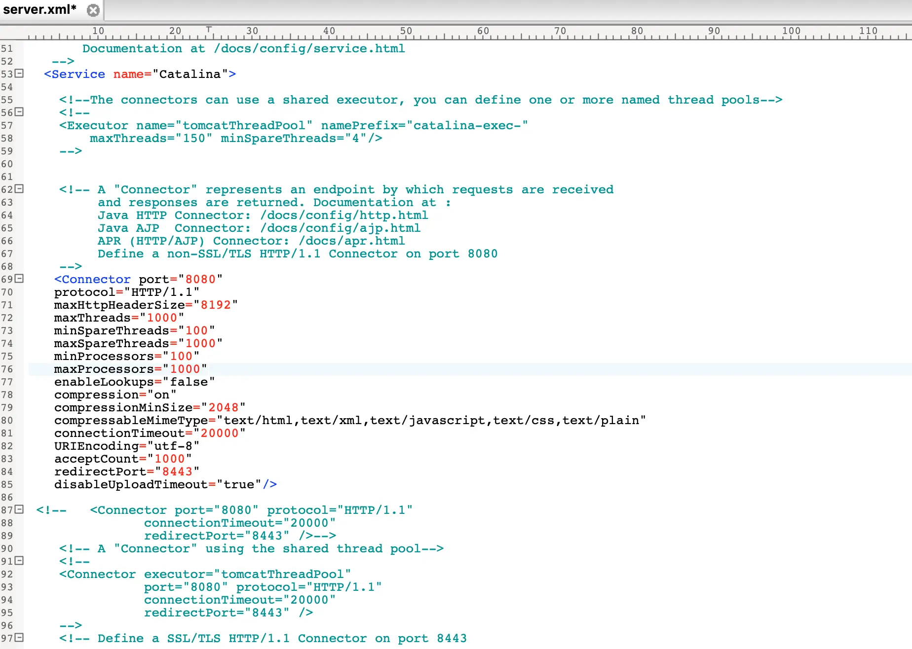 并发优化主要在conf中server.xml文件中配置。配置代码如下: