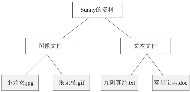 我们可以看出在第一张图中,包含文件和文件夹两类不同的元素,其中在文件夹中可以包含文件,还可以继续包含子文件夹,但是文件中不能再包含文件或者子文件夹.在此,我们可以称文件夹为容器(Container),而不同类型的各种文件是其成员,也称为叶子(Leaf),一个文件夹也可以作为另一个更大的文件夹的成员.如果我们需要对某一个文件夹进行操作,如查找文件,那么需要对指定的文件夹进行遍历,如果存在子文件夹则打开其子文件夹继续遍历,如果是文件则判断之后返回查找结果