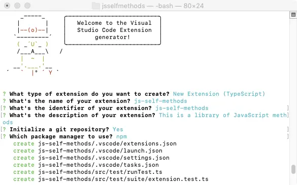 What type of extension do you want to create? //你想用什么类型创建,我选用的TypeScript