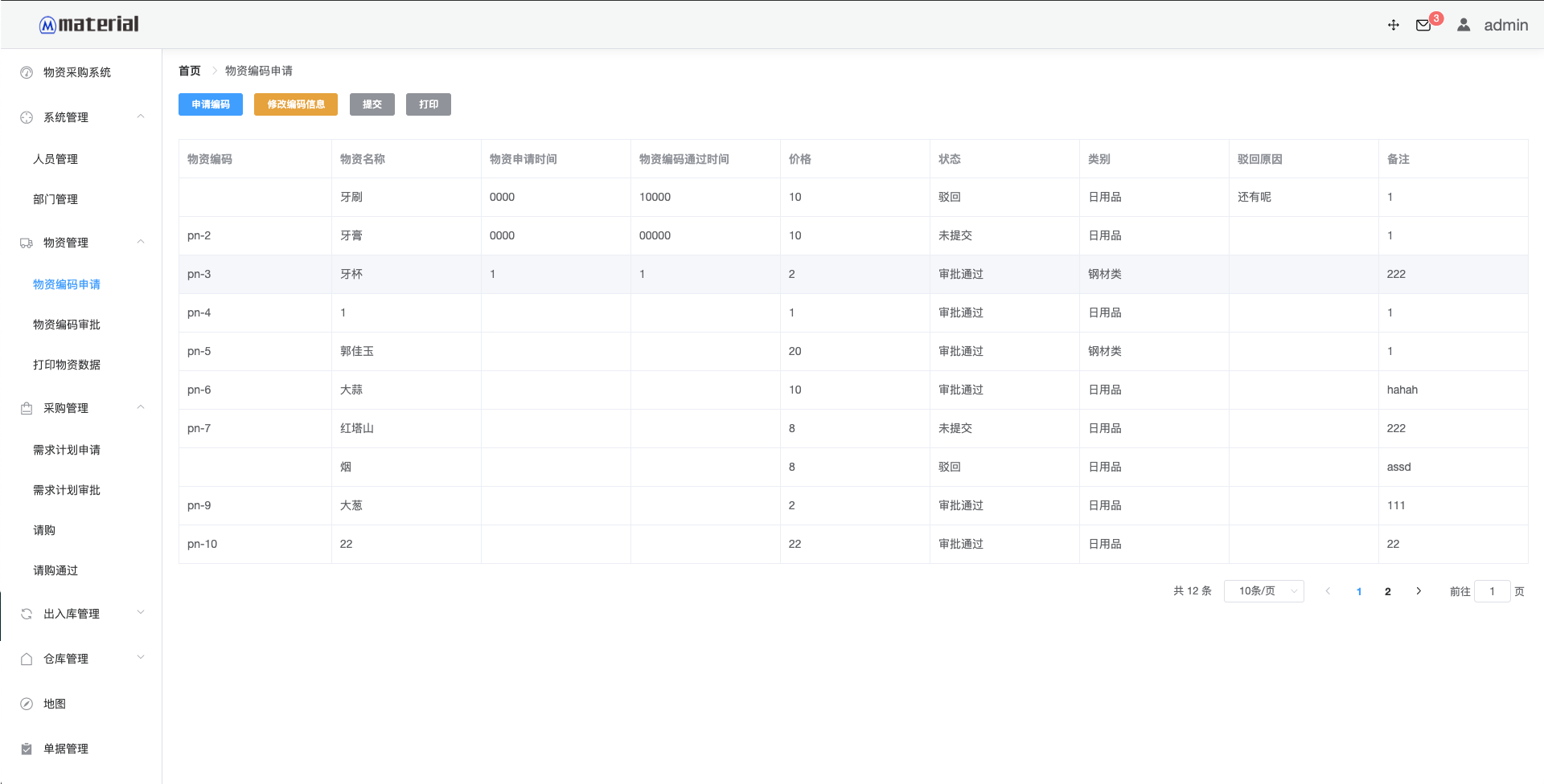 - 物资编码申请