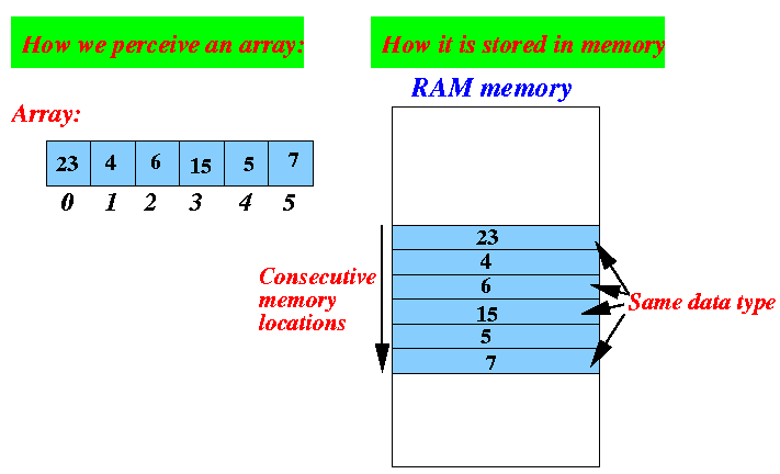 数组是一个有限的、类型相同的数据的集合,在内存中是一段连续的内存区域。