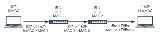 首先查看目标IP和自己是否在同一个子网络,如果是就发送ARP协议获取这个地址对应的MAC地址,然后将源MAC和目标MAC地址放入链路层数据包,发送出去即可,如果不在同一个子网络,就需要发送ARP协议,首先获取到网关的MAC地址,然后将源MAC和网关MAC放入链路层数据包的标头,网关收到数据包后,发现MAC地址匹配然后取出IP地址,查看是否是自己局域网的,如果不是就继续跳转,直到找到这个目标IP所在的局域网,在这个局域网上发送ARP,获取到目标地址的MAC地址。