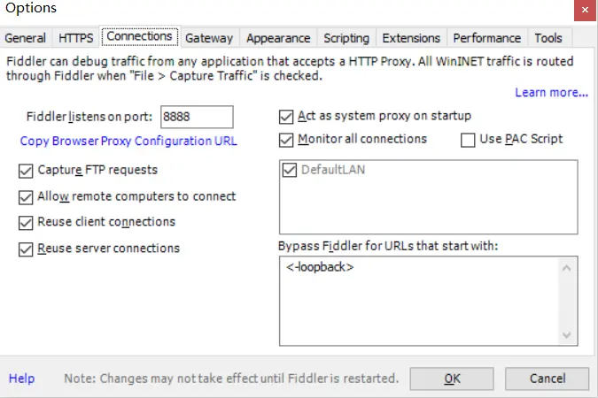 - fiddler默认抓取的是ie浏览器下的请求,抓取google需要进行配置