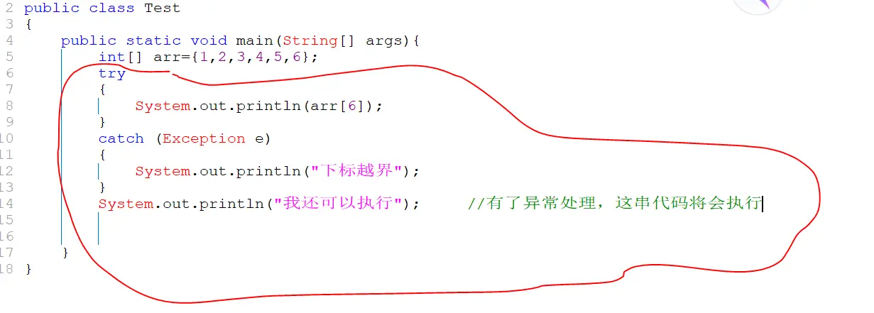 只要用try…catch方式对异常进行处理了,无论该异常是编译期异常还是运行时异常该异常代码之后的代码都可以执行!如果没有用try…catch进行处理,那么异常出现之后的代码就不会执行。