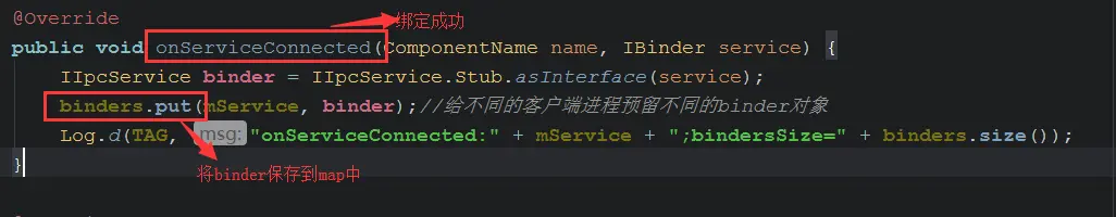 Log.d(TAG, "onServiceConnected:" + mService + ";bindersSize=" + binders.size());