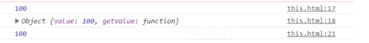 这里的getValue属于对象myObject,所以this就指向myObject,执行结果如下: