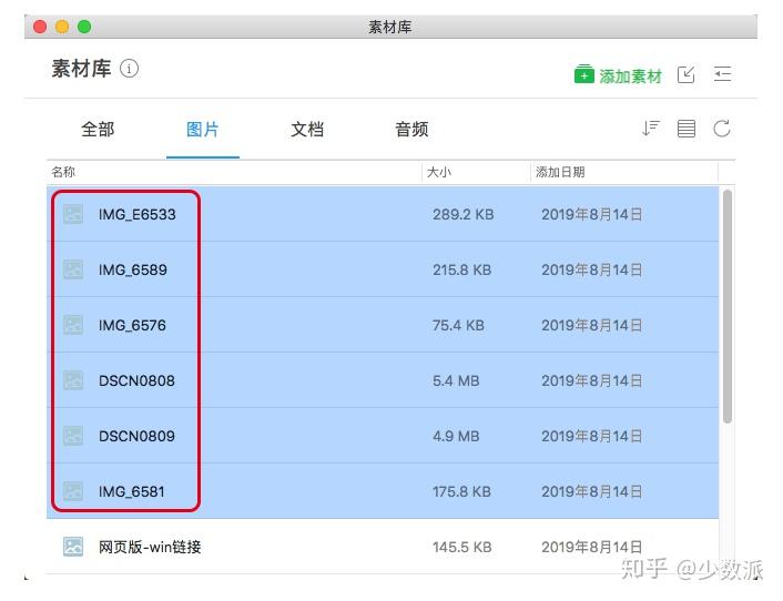 再者,从这一点来讲,素材库这一功能其实比较切合的一点或许是素材文件的「暂存库」或者「中转库」。