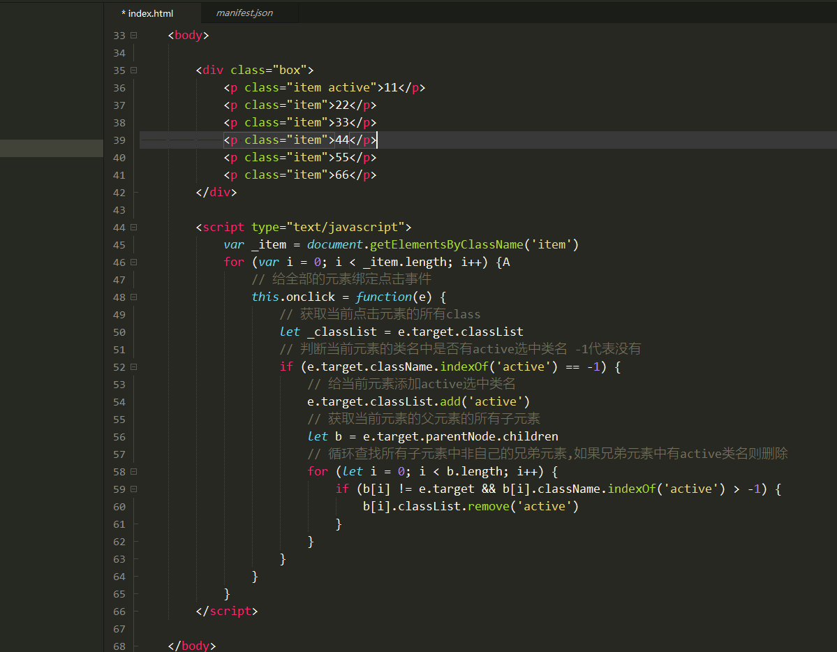 // 给当前元素添加active选中类名