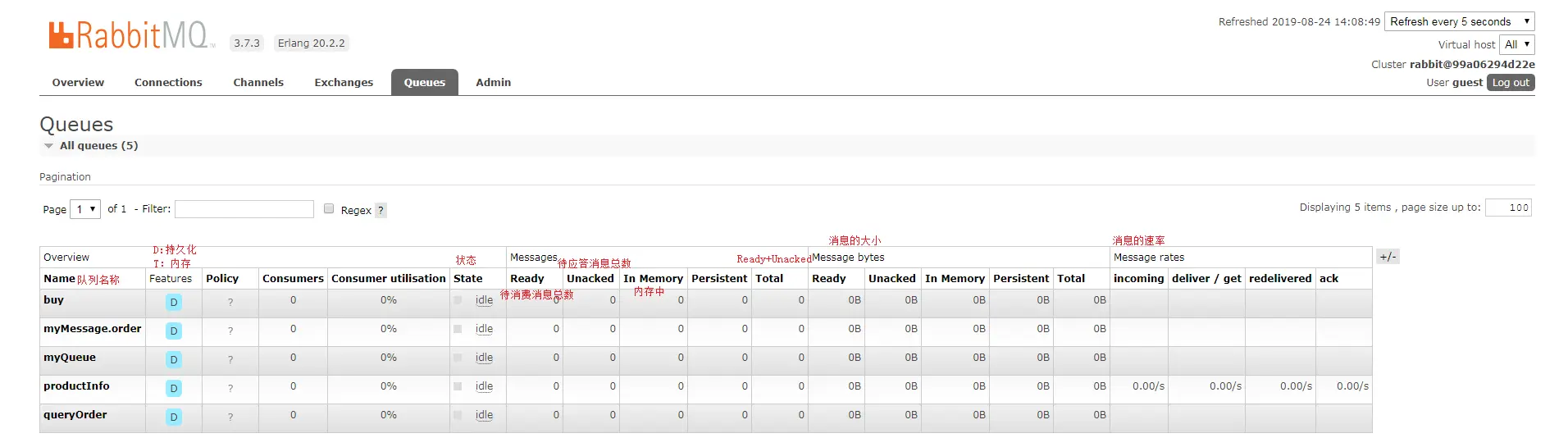 - Durability: 是否持久化,Durable:持久化。Transient:不持久化。
