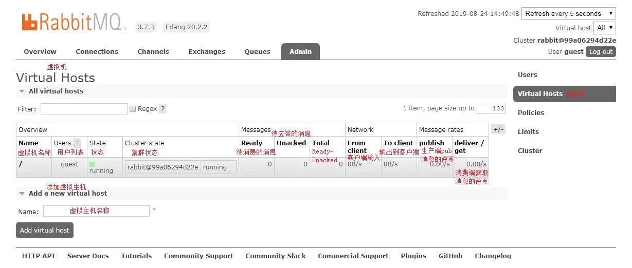 - Virtual host:属于哪个Virtual host,我这里只有一个所以不显示