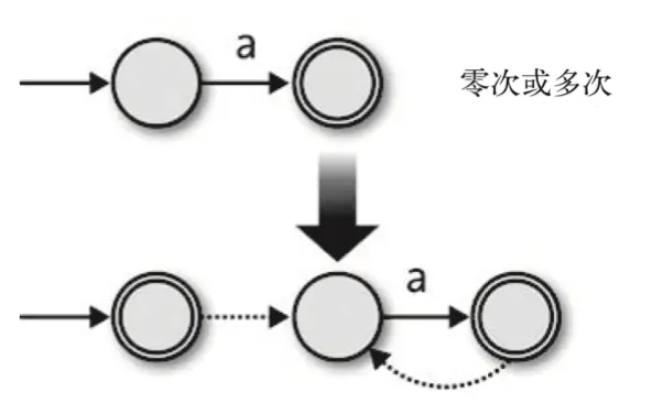 我们为a*构造一个NFA,其开头是一个a对应的NFA,然后做两个补充: