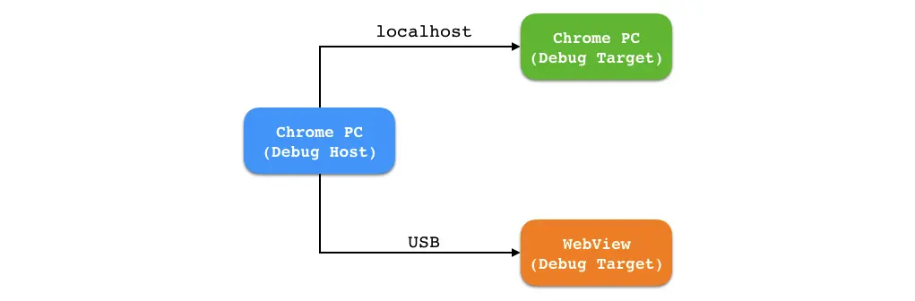Google 为了限制调试端口的接入范围,对于 Chrome PC 浏览器,调试端口只接受来自 127.0.0.1 或者 localhost 的数据请求,所以,你无法通过你的本地机器 IP 来调试 Chrome。对于 Android Chrome/WebView,调试端口只接受来自于 shell 这个用户数据请求,也就是说只能通过 USB 进行调试,而不能通过 WIFI。