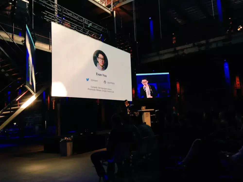 2016年9月招开的JSConf China(JavaScript 中国开发者大会),尤雨溪作为第一位嘉宾登台介绍了Vue.js的过去并展望了未来。