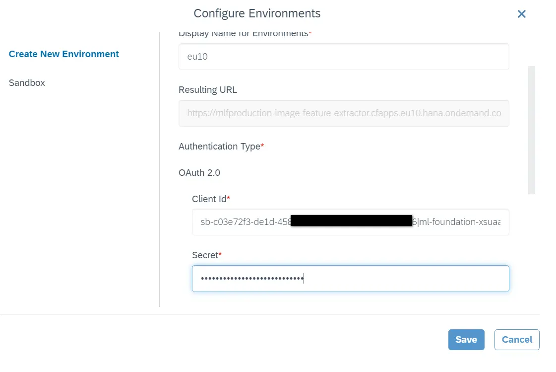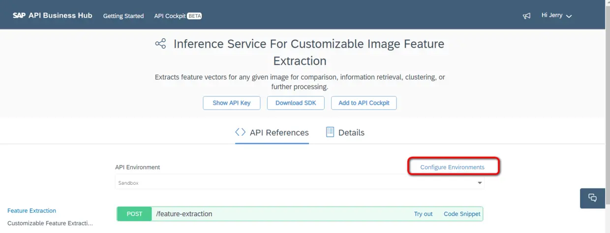 选中一个需要进行测试的Leonardo机器学习服务,点击Configure Environments: