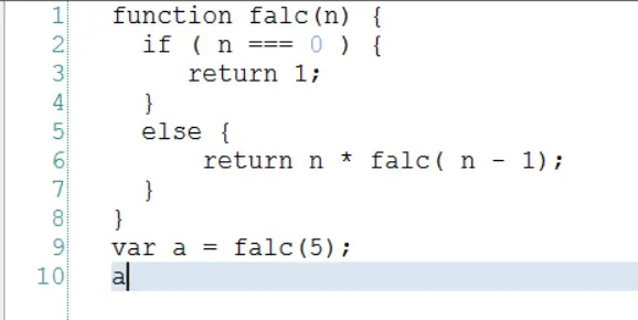 当然,执行包里的报表SJSEU,把一些教科书上的JavaScript代码粘贴进去玩玩,是没有任何问题的。比如下面这段用JavaScript递归实现的整数阶乘代码,