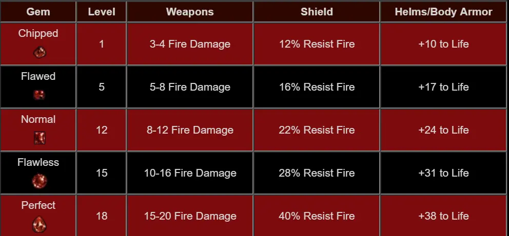把品质各异的红宝石镶嵌到头盔,铠甲,武器和盾牌上,能获得下表里定义的各种属性加成。