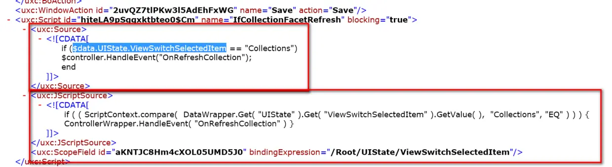带着这个好奇心,我打开包含了这段Ruby代码的UI视图,发现在编写完毕Ruby代码后,保存激活时,Netweaver后台会自动把这些Ruby代码转换成对应的JavaScript代码,最后浏览器执行的当然就是后者,即转换后的JavaScript代码。