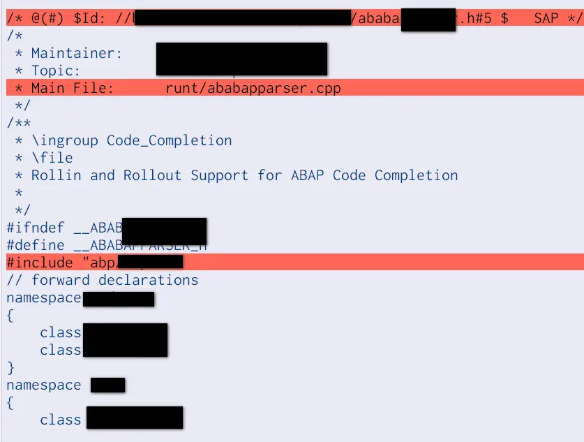 在SAP内部的Netweaver服务器上,我们是能够查看这些C/C++的源代码的,只是我不能将这些代码贴出来: