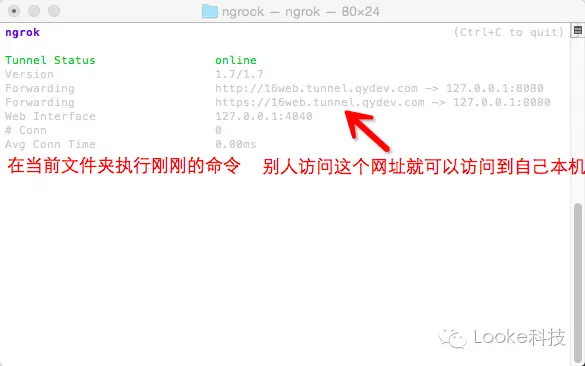 3 )执行 ./ngrok -config=ngrok.cfg -subdomain xxx 80 //(xxx 是你自定义的域名前缀)